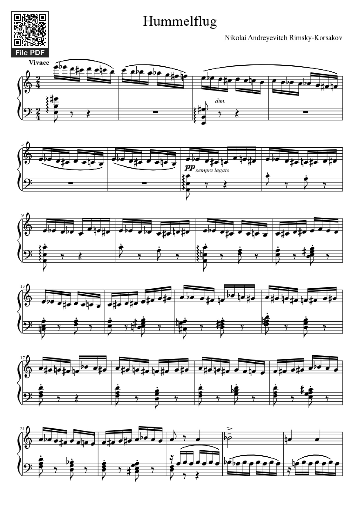 Hummelflug Piano by Nikolai Andreyevitch Rimsky Korsakov. All music sheets and PDF files provided here are shared for educational and practice purposes only. The sheets include notes and chords for reference and non-commercial use. We do not sell or claim ownership of any copyrighted material. All copyrights belong to the original composer and copyright holders.