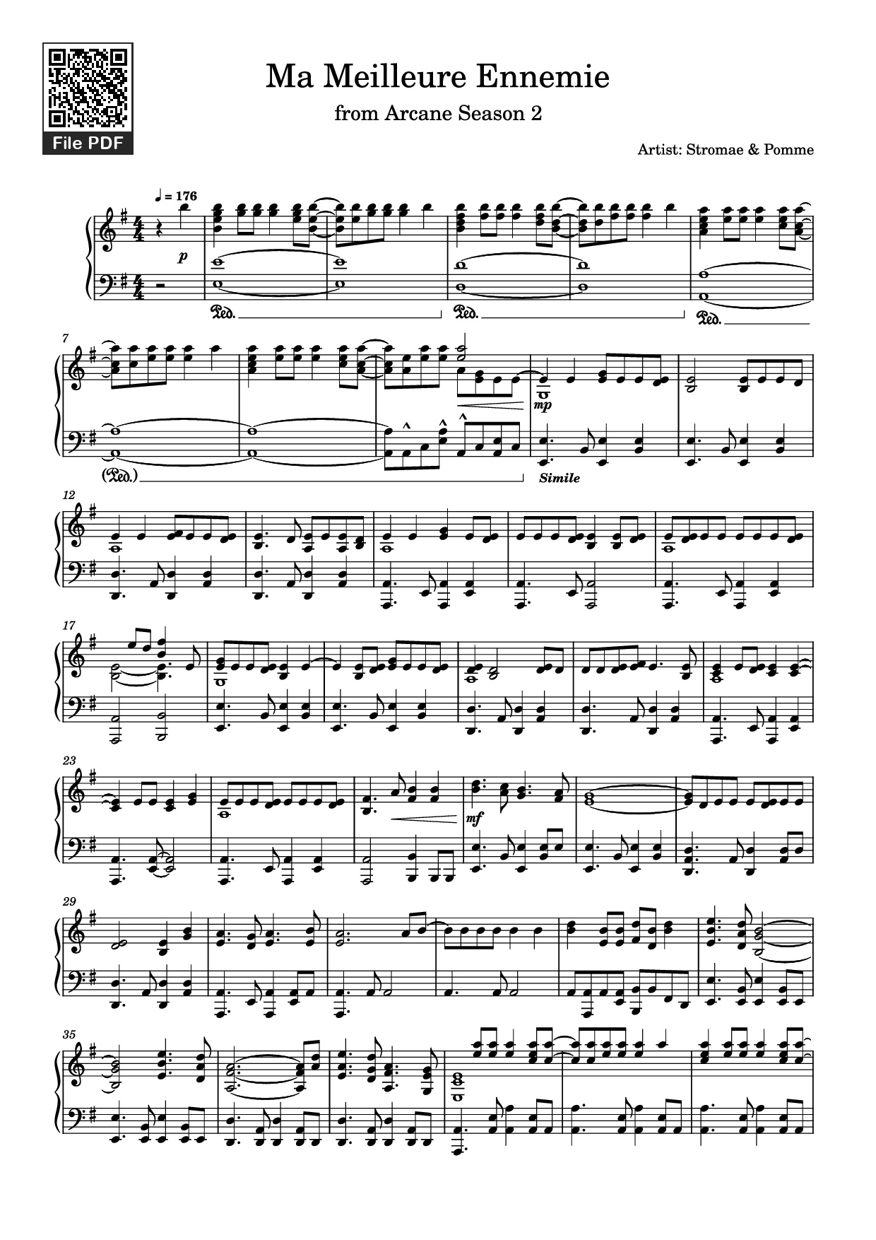 Ma Meilleure Ennemie Piano by Artist Stromae Pomme. All music sheets and PDF files provided here are shared for educational and practice purposes only. The sheets include notes and chords for reference and non-commercial use. We do not sell or claim ownership of any copyrighted material. All copyrights belong to the original composer and copyright holders.
