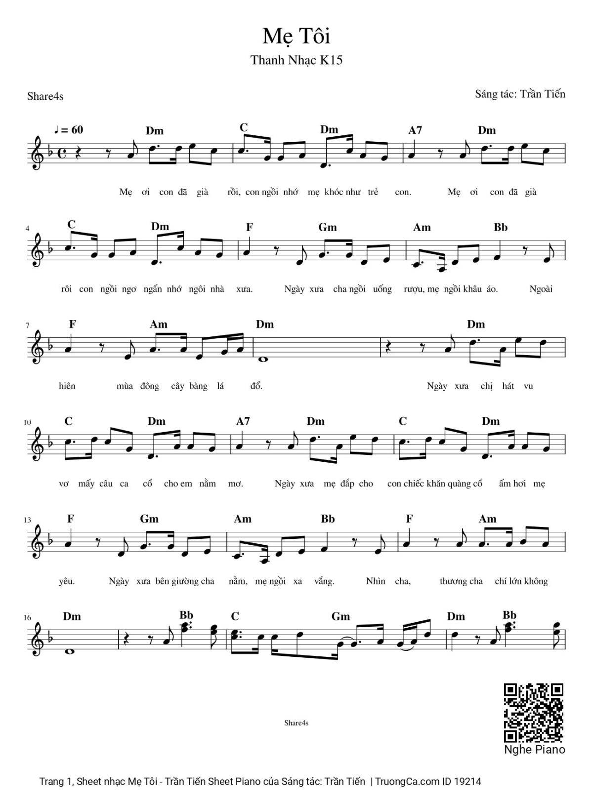 More similar sheet PDFs: Mẹ Tôi - Trần Tiến Sheet Piano: