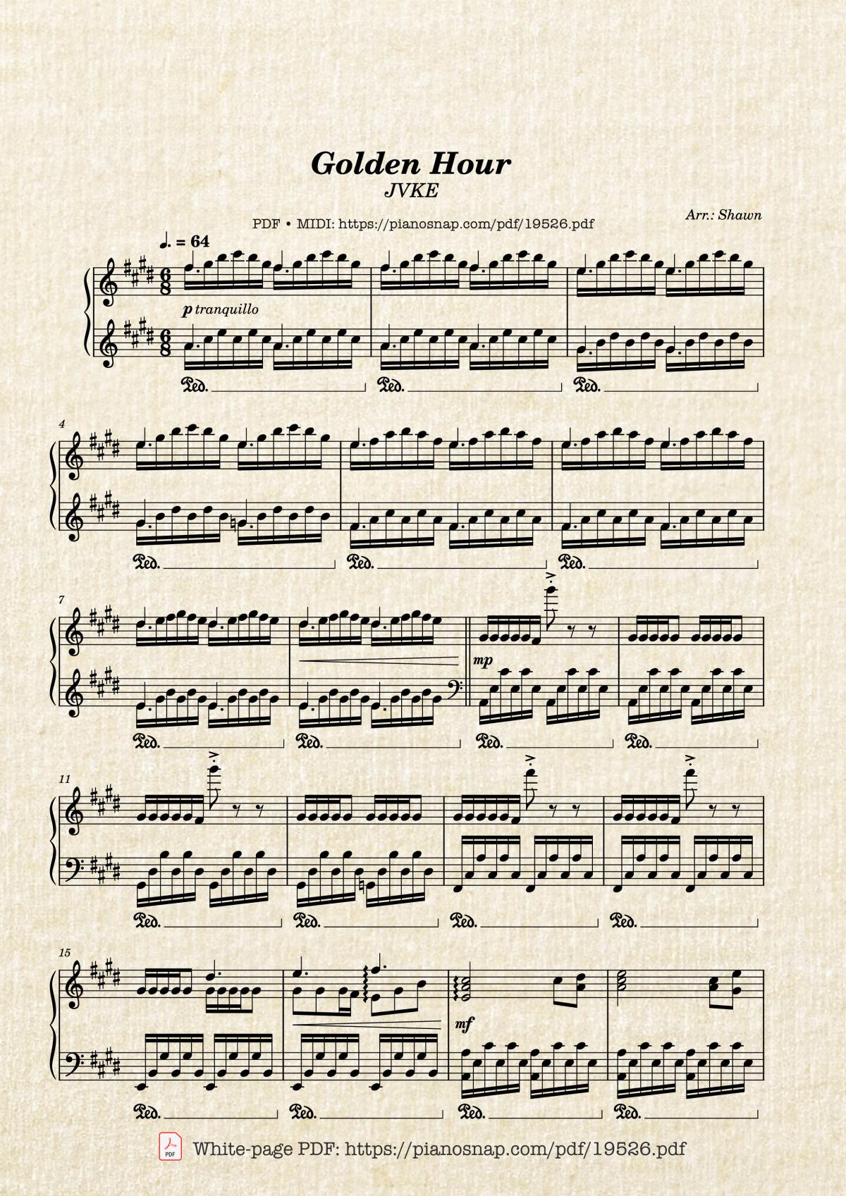 More similar sheet PDFs: Golden Hour JVKE Sheet Piano: