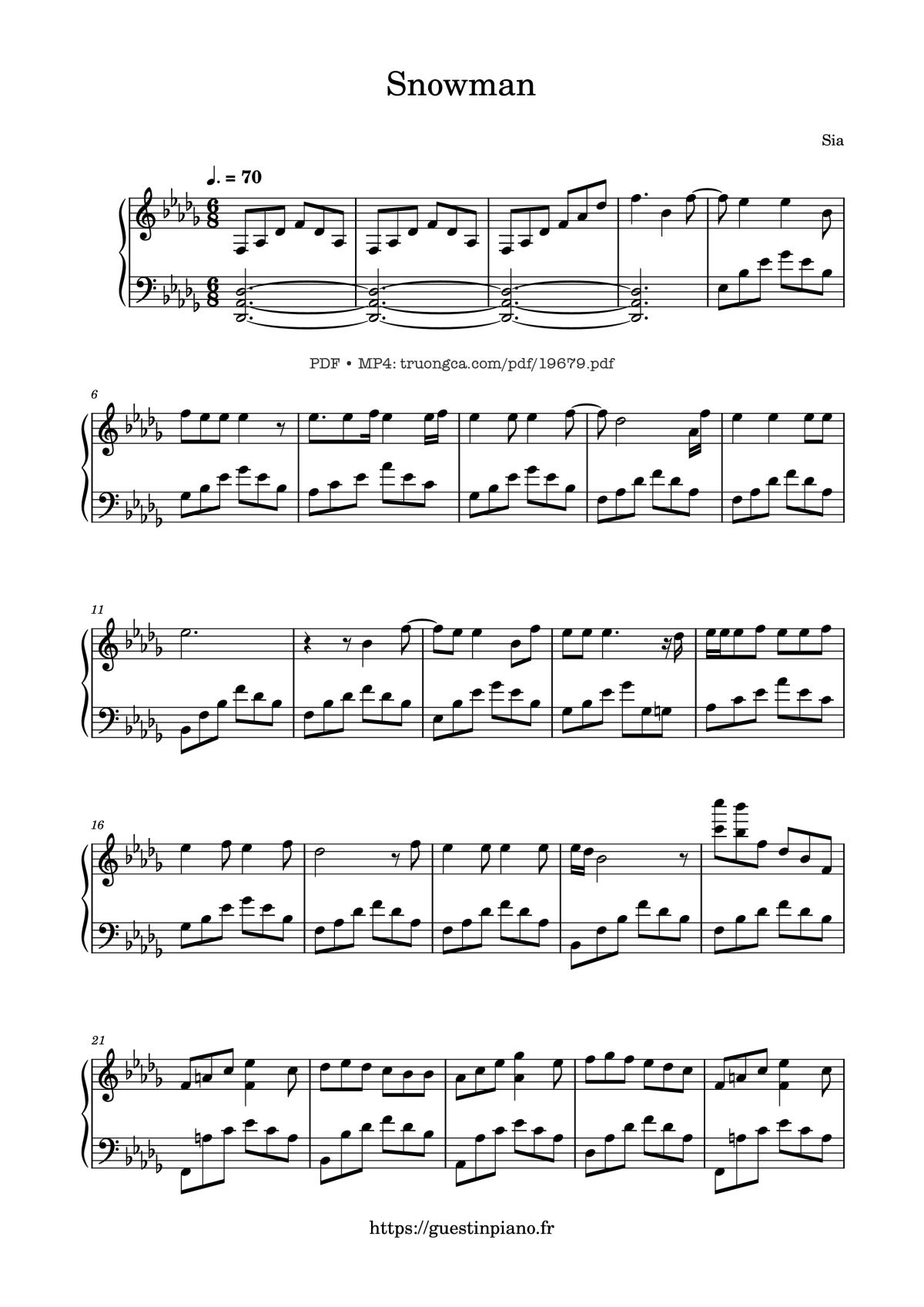 More similar sheet PDFs: Snowman - Sia Sheet Piano: