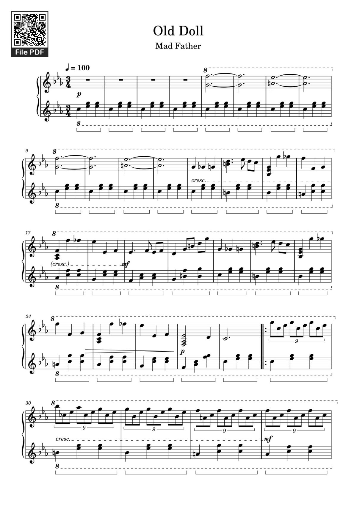 The videos/audio files Old Doll Sheet Piano by Meishini.ii are embedded from YouTube, MuseScore, or other third-party sources. Availability depends on the original platforms and may change due to copyright rules, policies, or advertisements. If a video or audio file cannot be played, it may have been removed by the source.