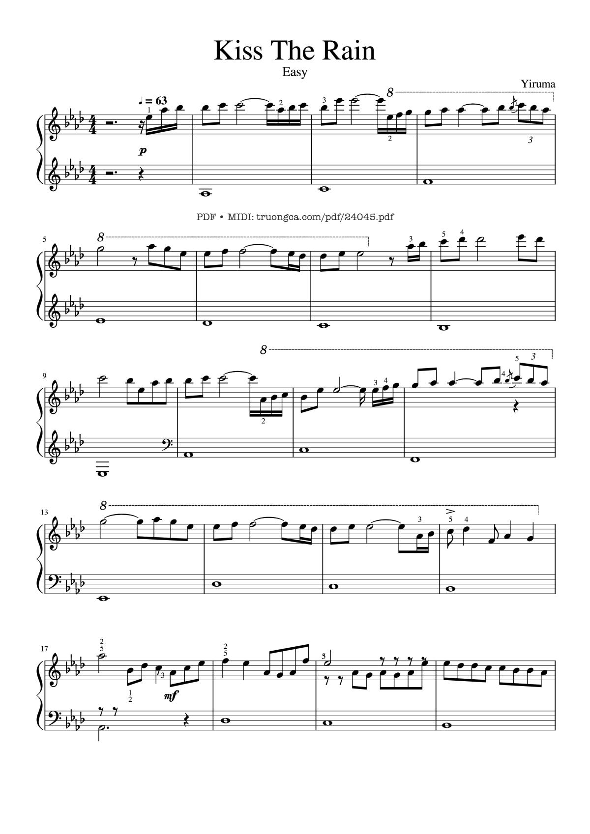 Sheet PDFs titled Kiss The Rain Piano Simple: