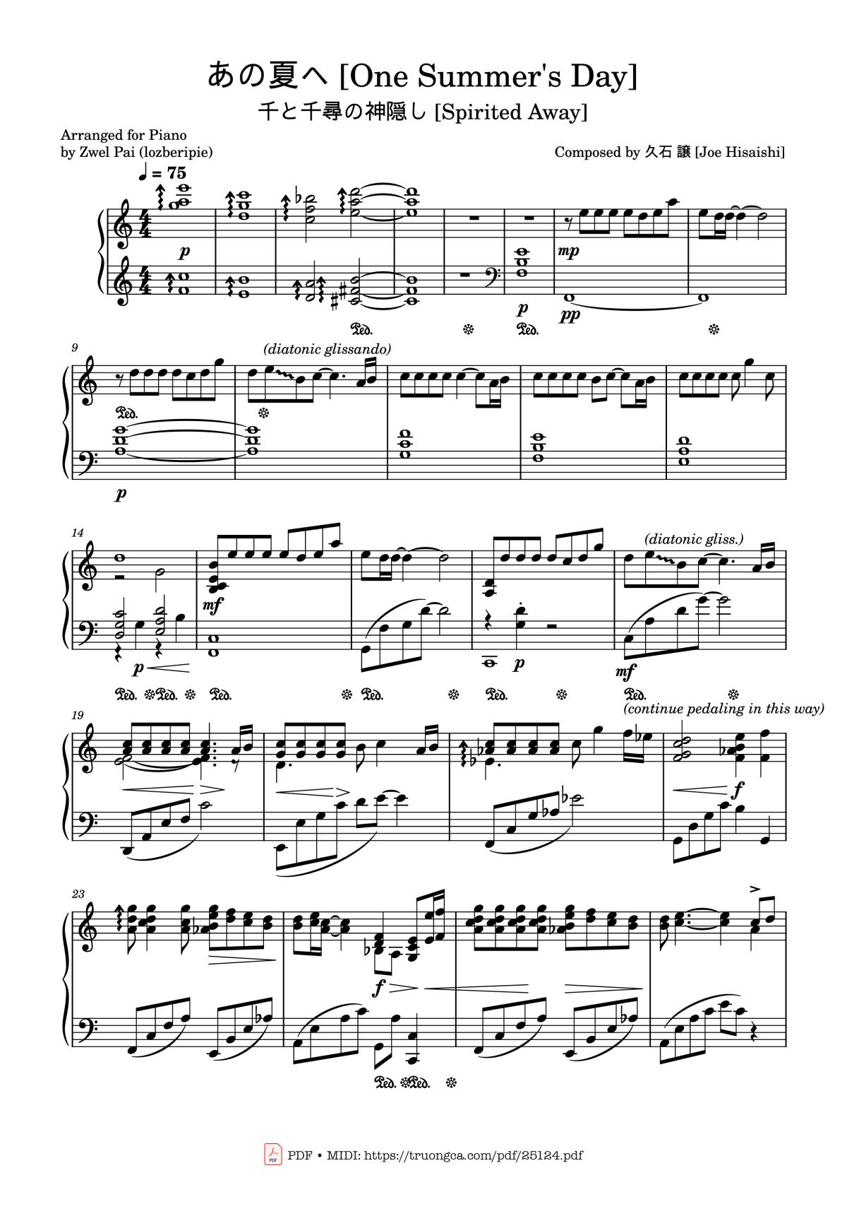 Sheet PDFs titled Joe Hisaishi - One Summer's Day Sheet Piano: