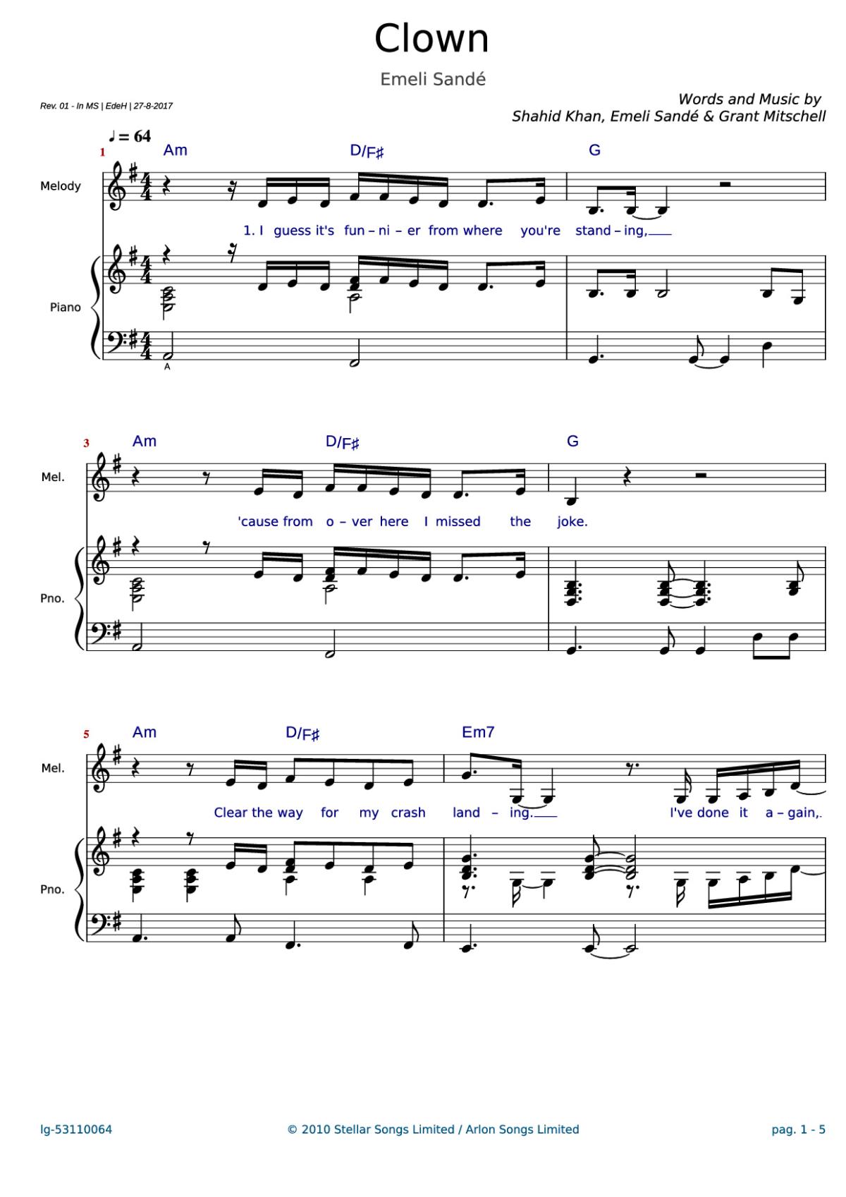 Download and print in PDF or MIDI free sheet music of clown - Emeli Sandé for Clown by Emeli Sandé arranged by Erik de Haan for Piano, Oboe (Solo)
