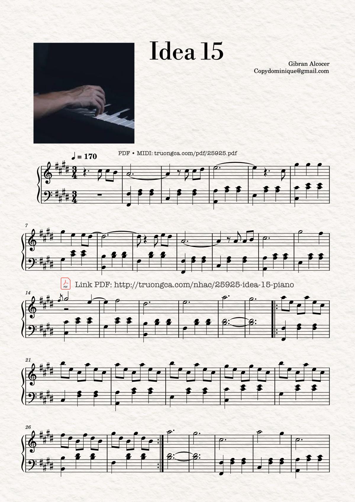 The videos/audio files Idea 15 Piano by Gibran Alcocer are embedded from YouTube, MuseScore, or other third-party sources. Availability depends on the original platforms and may change due to copyright rules, policies, or advertisements. If a video or audio file cannot be played, it may have been removed by the source.