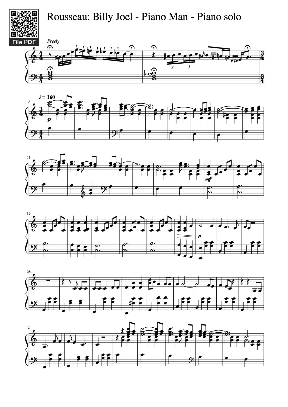 More similar sheet PDFs: Rousseau: Billy Joel - Piano Man - Piano solo: