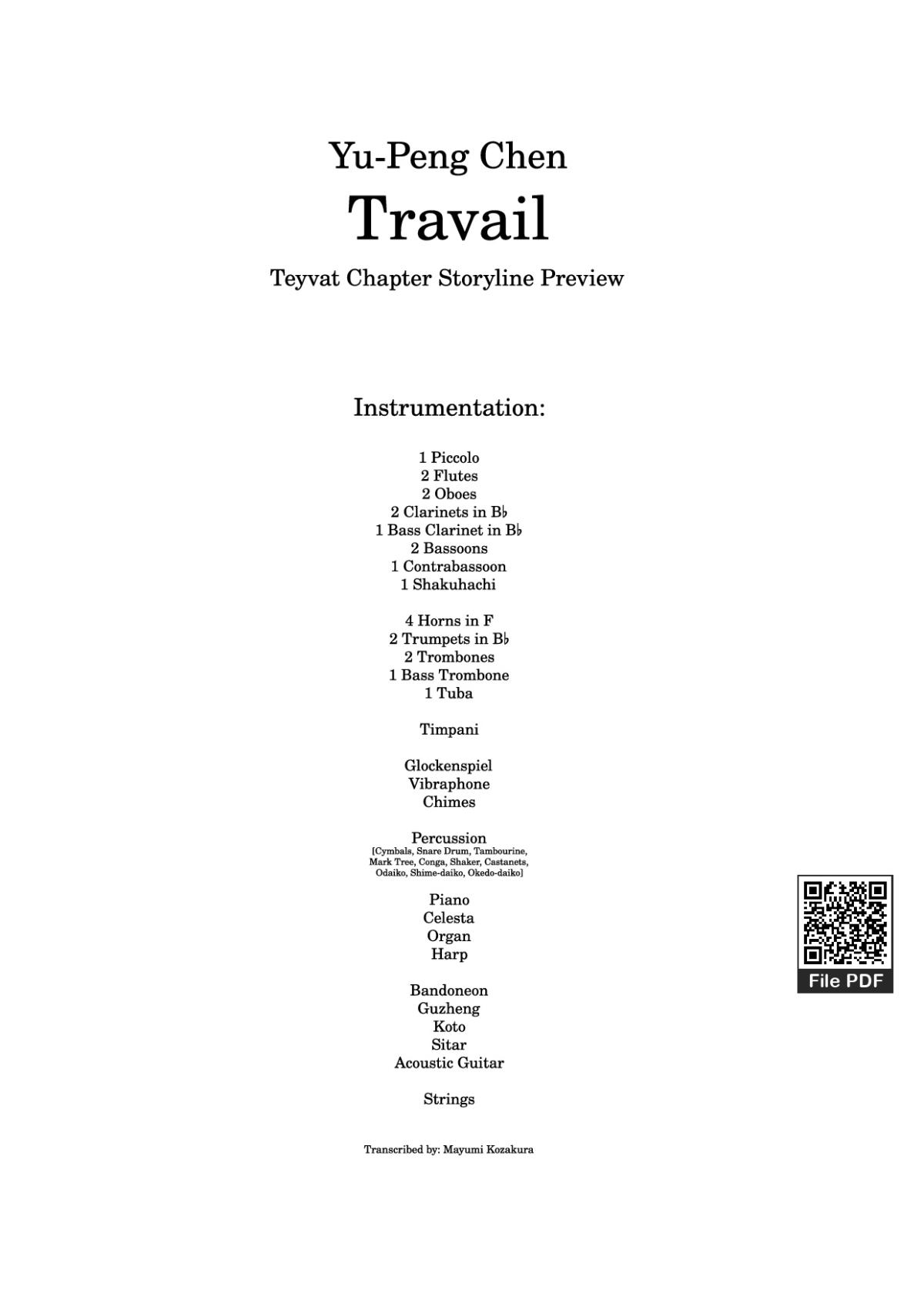 Download and print in PDF or MIDI free sheet music of Teyvat Chapter Storyline Preview: Travail - Yu-Peng Chen for Teyvat Chapter Storyline Preview: Travail by Yu-Peng Chen arranged by dennougyaru for Piano, Trombone, Organ, Tuba & more instruments (Symphony Orchestra)