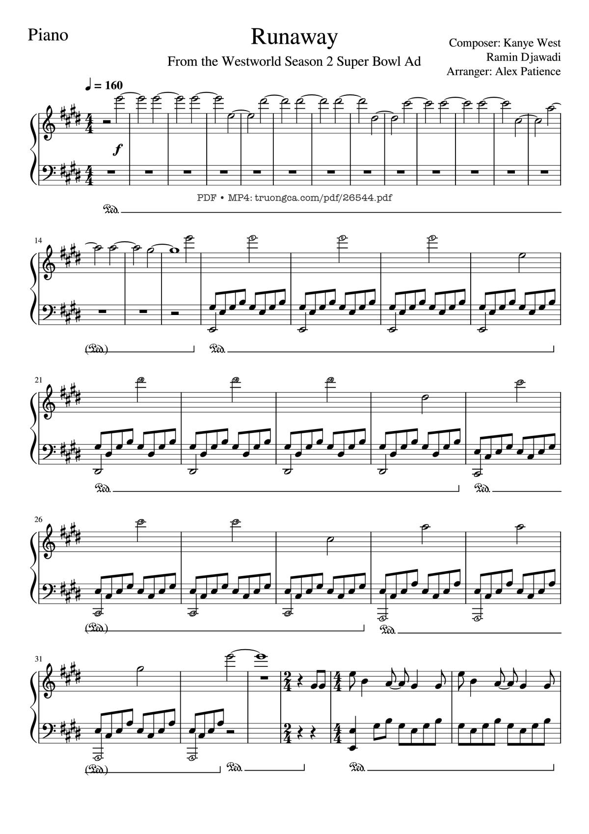 Download and print in PDF or MIDI free sheet music of runaway - Kanye West for Runaway by Kanye West arranged by bd604 for Piano (Solo)