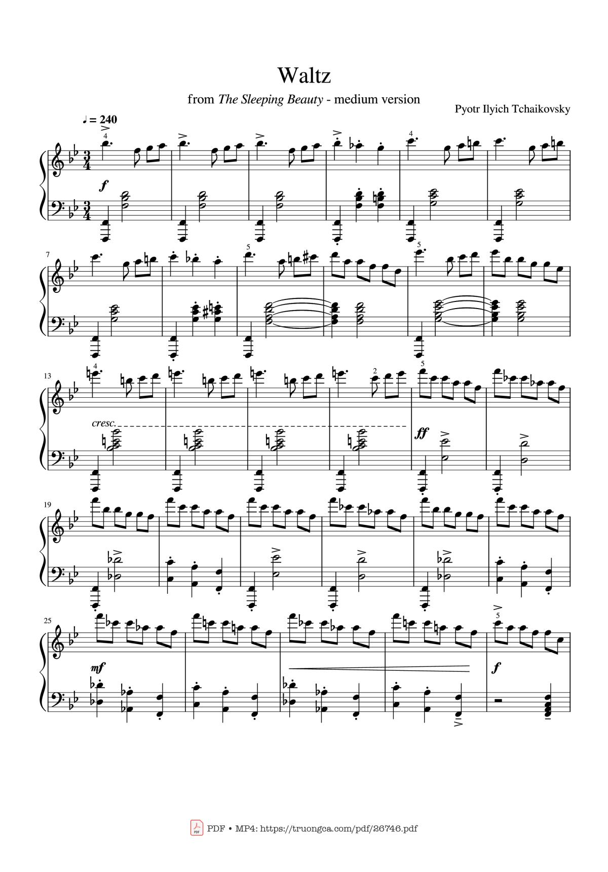 More similar sheet PDFs: Tchaikovsky Waltz from "The Sleeping Beauty" Piano: