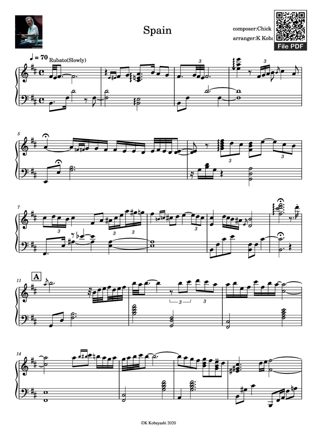 Download and print in PDF or MIDI free sheet music of spain - Chick Corea for Spain by Chick Corea arranged by K Kobayashi for Piano (Solo)