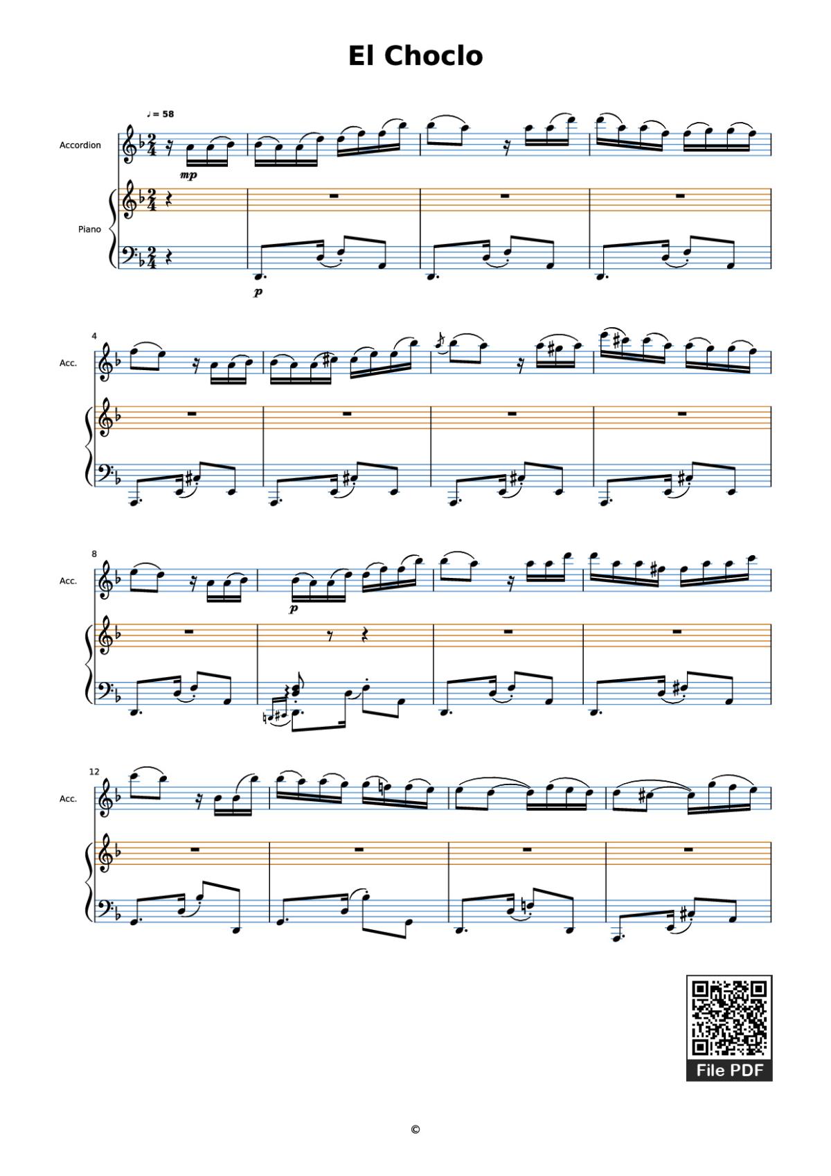 Download and print in PDF or MIDI free sheet music of El Choclo - Ángel Gregorio Villoldo for El Choclo by Ángel Gregorio Villoldo arranged by www.Exact-Notes.com for Piano, Accordion (Mixed Duet)