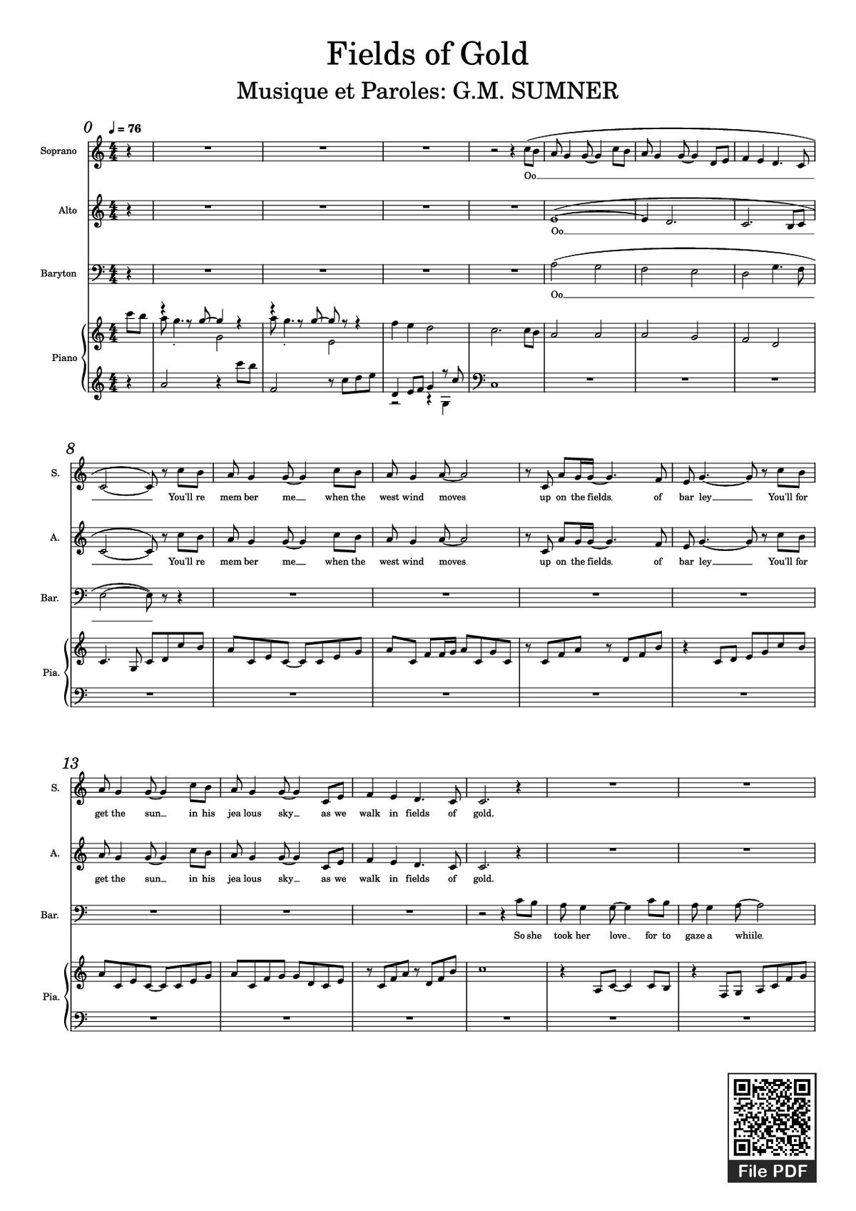 Download and print in PDF or MIDI free sheet music of Fields of Gold - G.