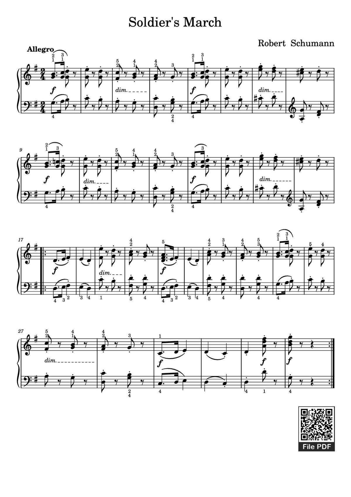 Free Piano Sheet Music - Soldier's March Op. 68 No. 2 - Schumann. Enjoy! Soldier's March (pdf) Soldier's March