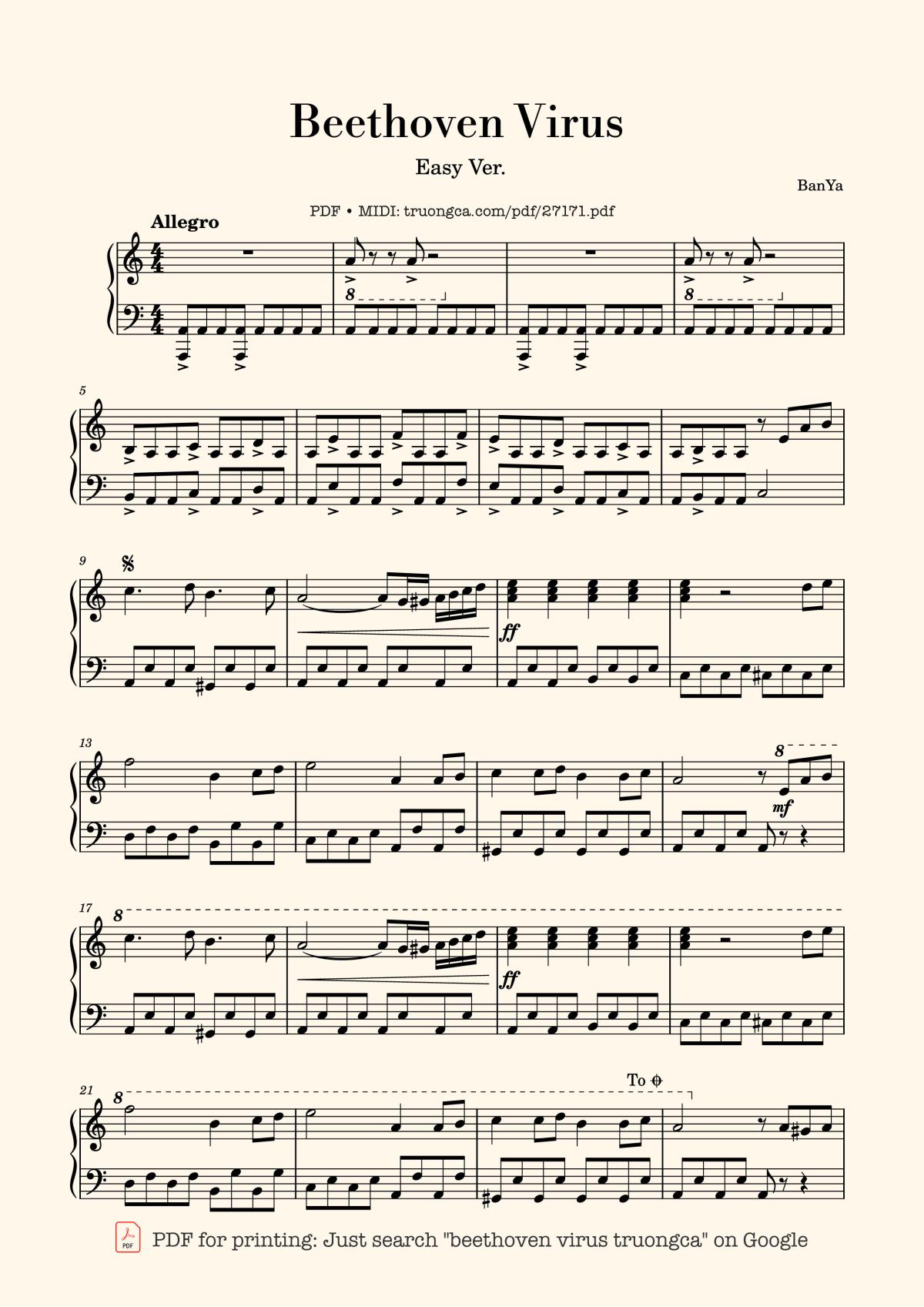 More similar sheet PDFs: Beethoven Virus (easy):
