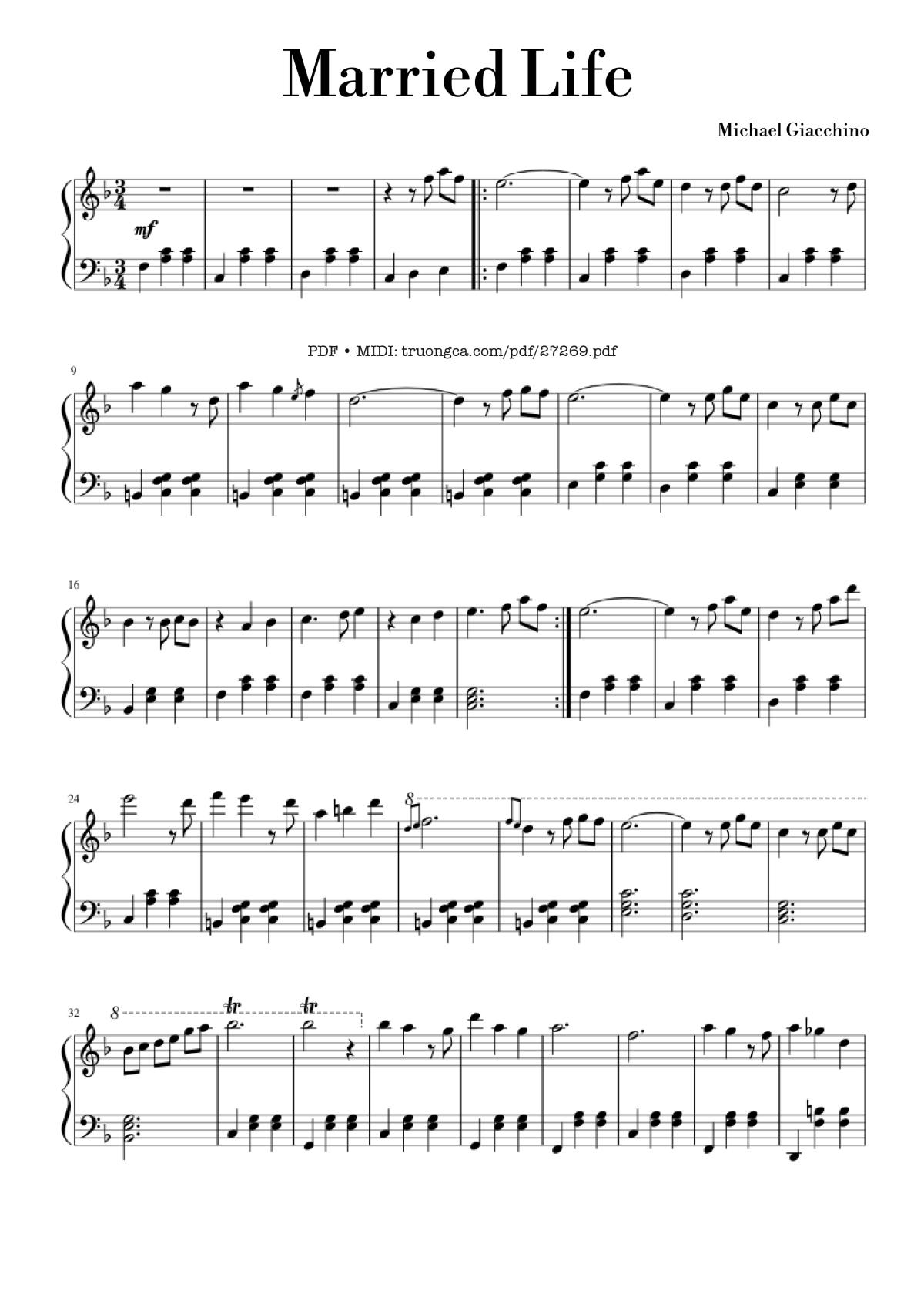 More similar sheet PDFs: Married Life Piano: