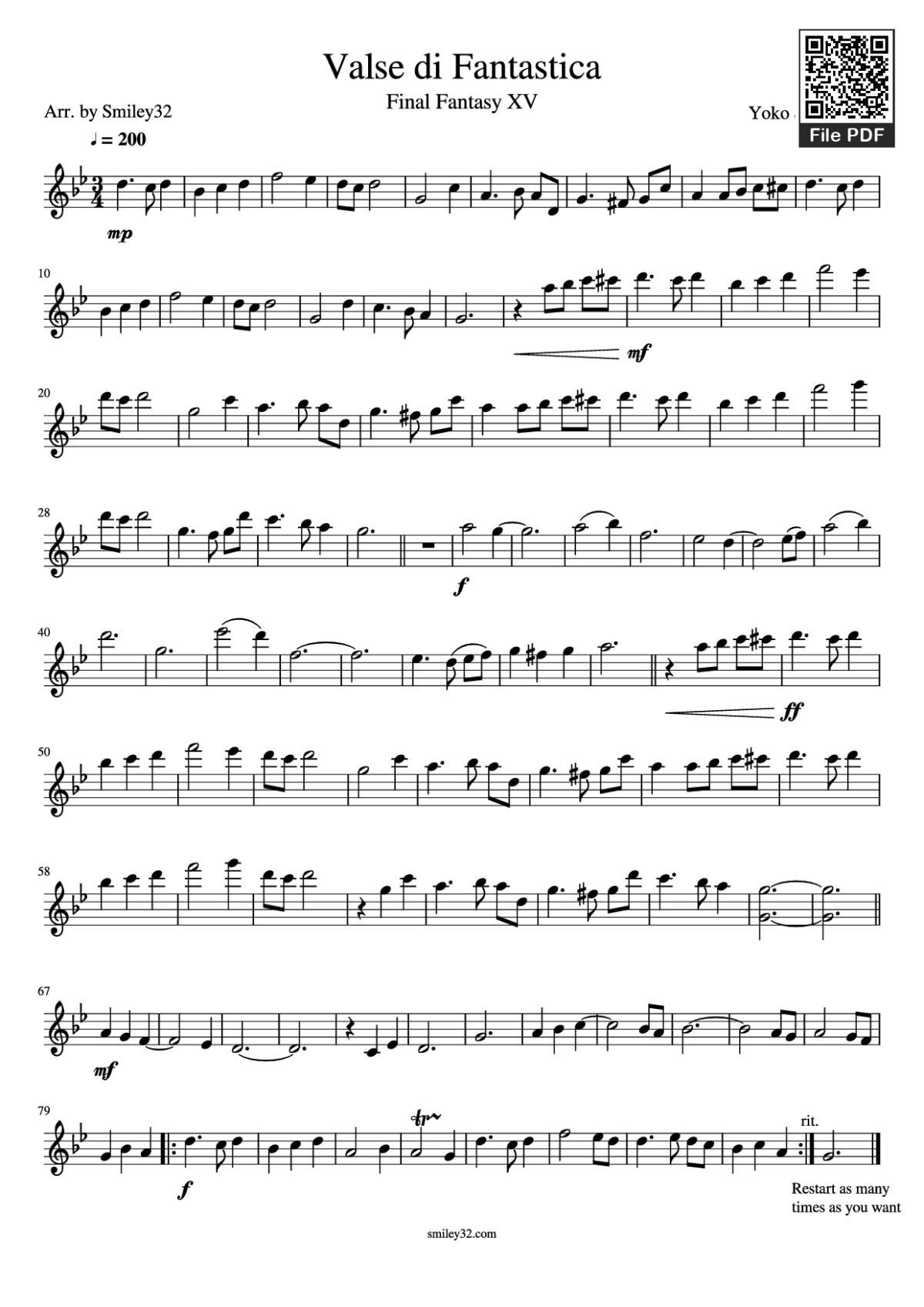 Download and print in PDF or MIDI free sheet music of Valse de Fantastica - Yoko Shimomura for Valse De Fantastica by Yoko Shimomura arranged by Smiley32 for Violin (Solo)