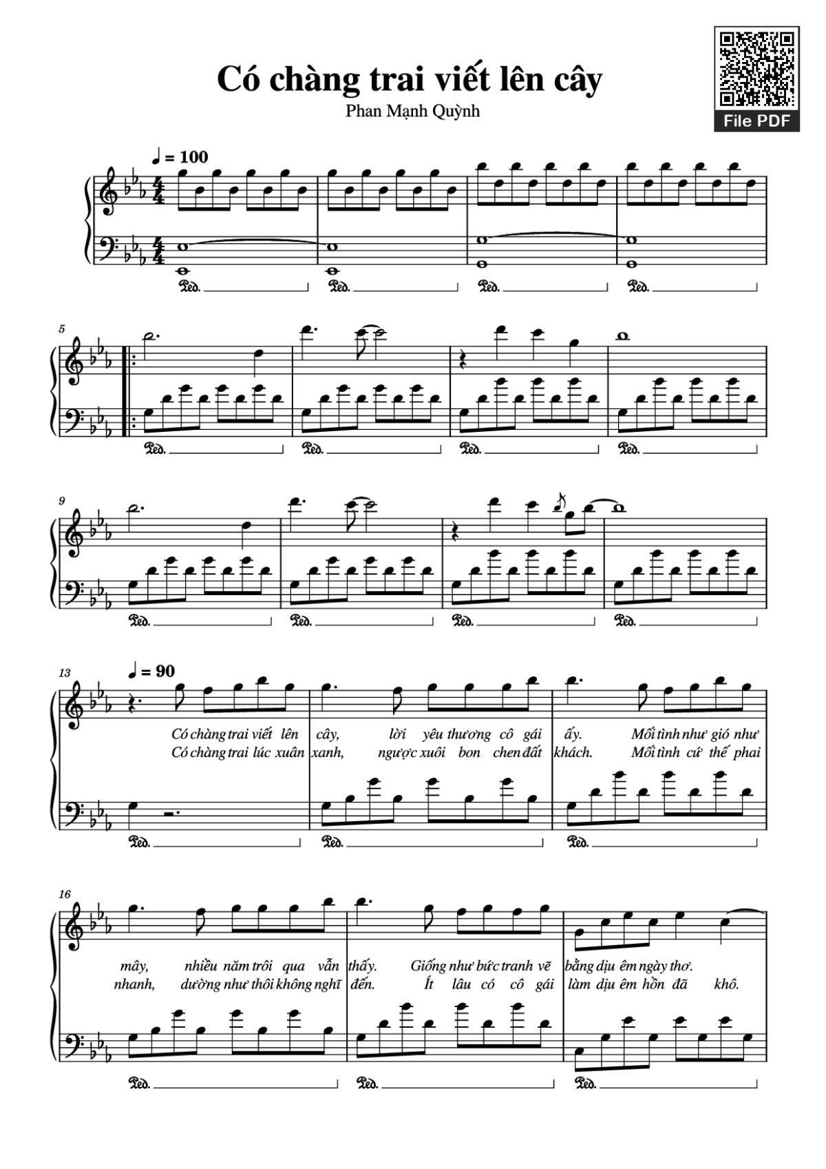 Download and print in PDF or MIDI free sheet music of Có chàng trai viết lên cây - Phan Mạnh Quỳnh for Có Chàng Trai Viết Lên Cây by Phan Mạnh Quỳnh arranged by CowCoww for Piano (Solo)