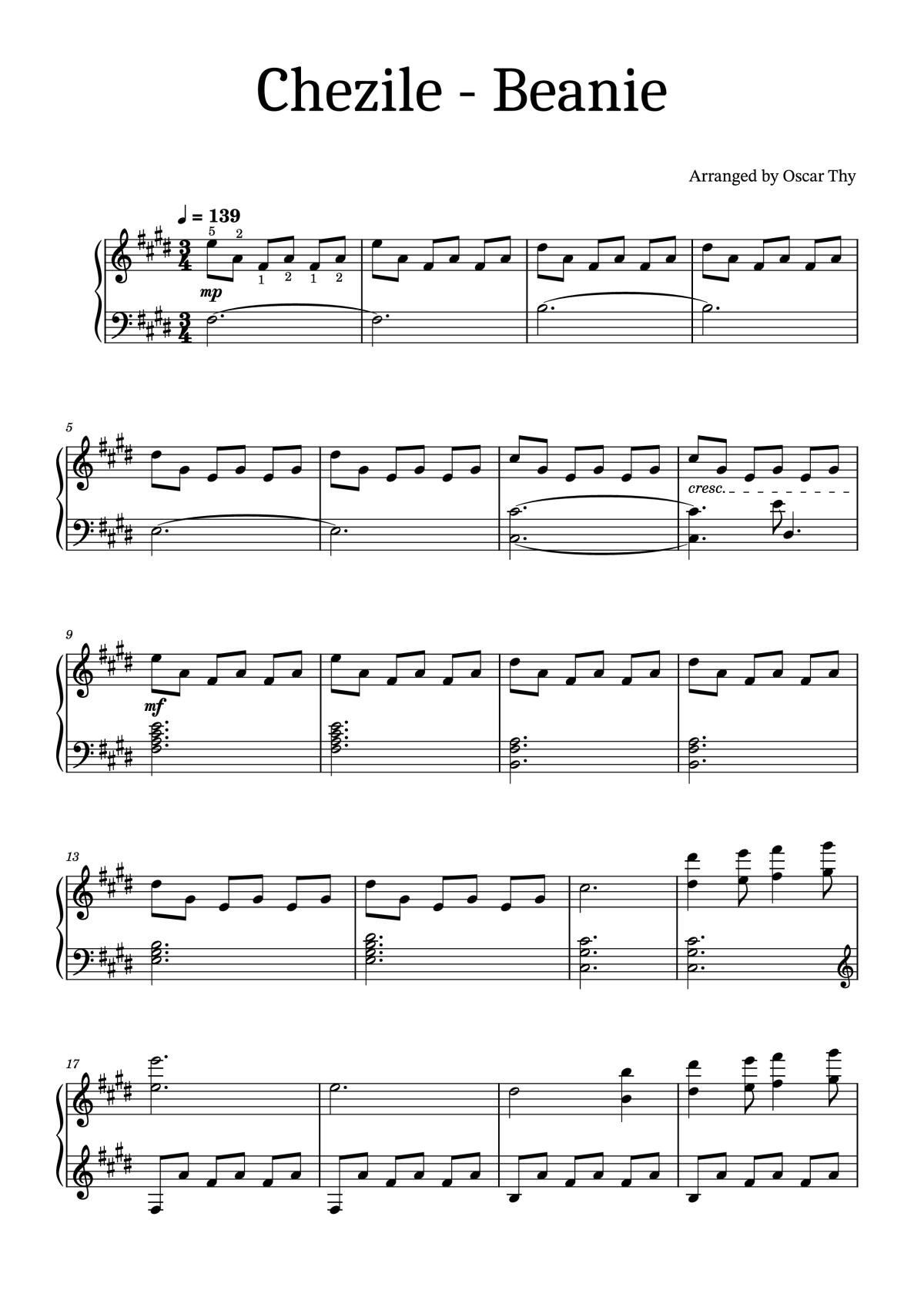 Download and print in PDF or MIDI free sheet music of Beanie - chezile for Beanie by chezile arranged by Oscar Thy for Piano (Solo) on EZkeys