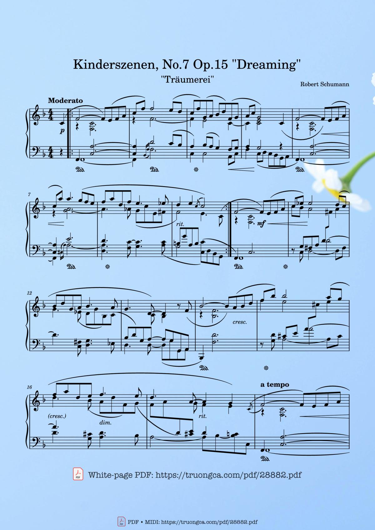 The videos/audio files Traumerei Kinderszenen Piano by Robert Schumann are embedded from YouTube, MuseScore, or other third-party sources. Availability depends on the original platforms and may change due to copyright rules, policies, or advertisements. If a video or audio file cannot be played, it may have been removed by the source.