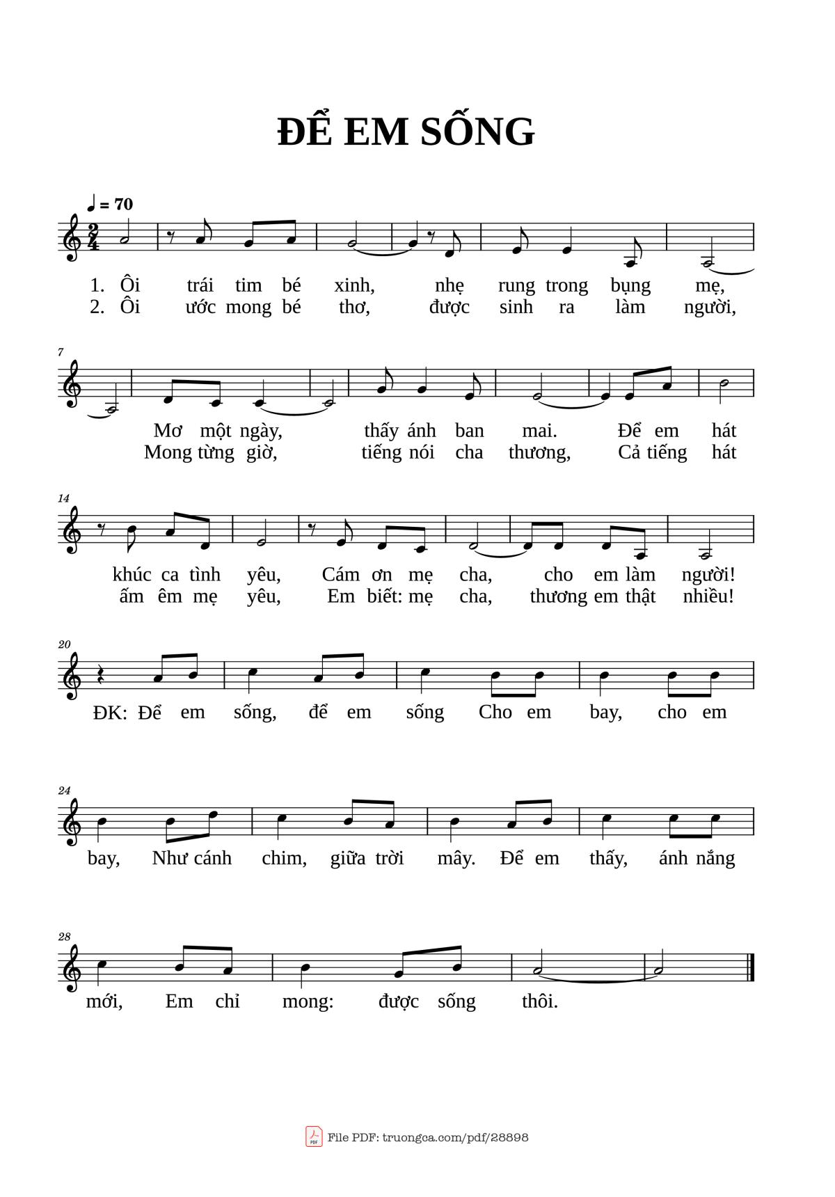 Download and print in PDF or MIDI free sheet music of Để em sống