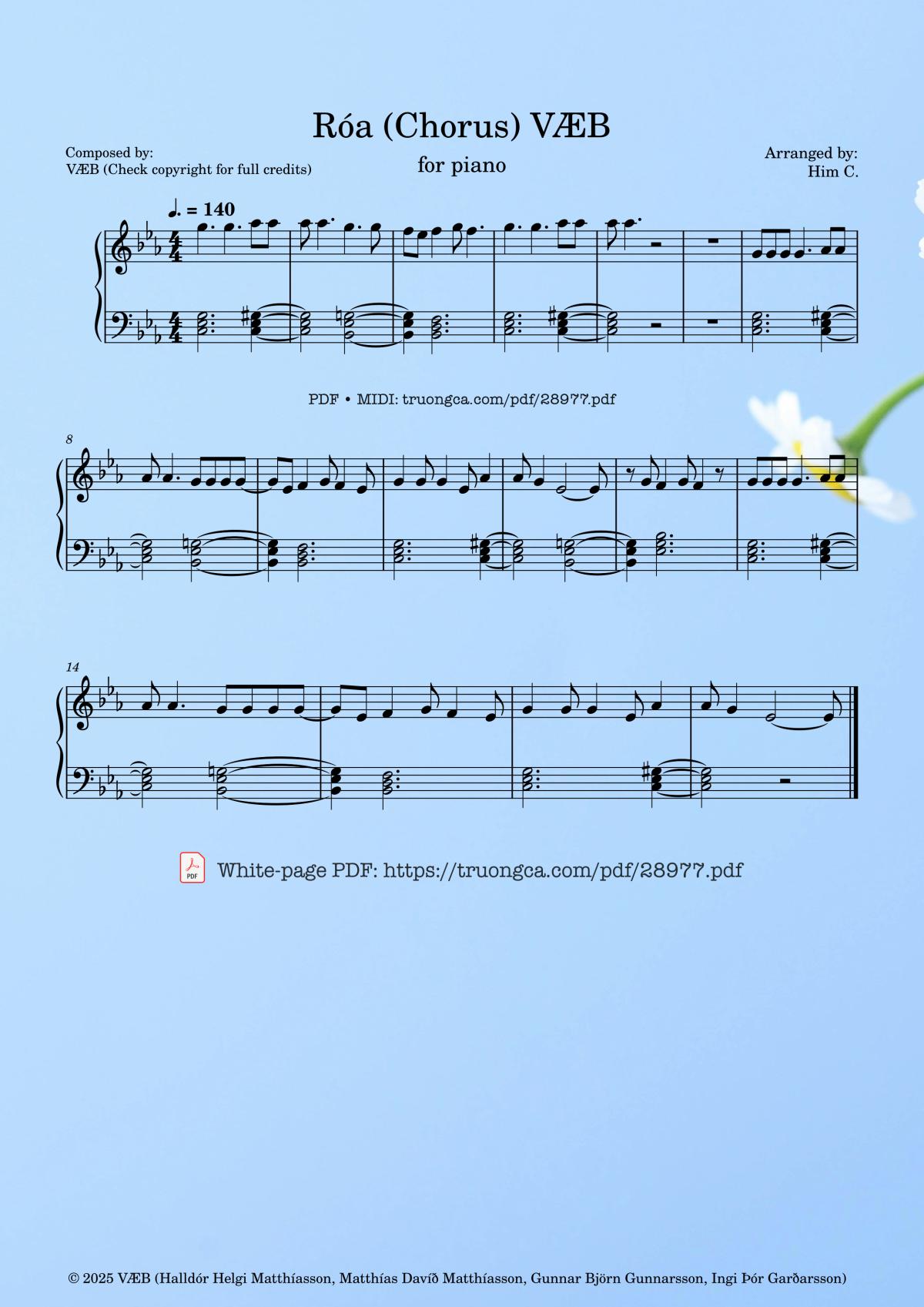 More similar sheet PDFs: Róa (Chorus) VÆB Piano: