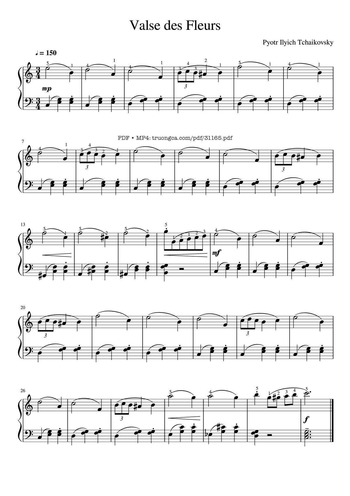 The videos/audio files Waltz Of The Flowers Piano Easy by Pyotr Ilyich Tchaikovsky are embedded from YouTube, MuseScore, or other third-party sources. Availability depends on the original platforms and may change due to copyright rules, policies, or advertisements. If a video or audio file cannot be played, it may have been removed by the source.