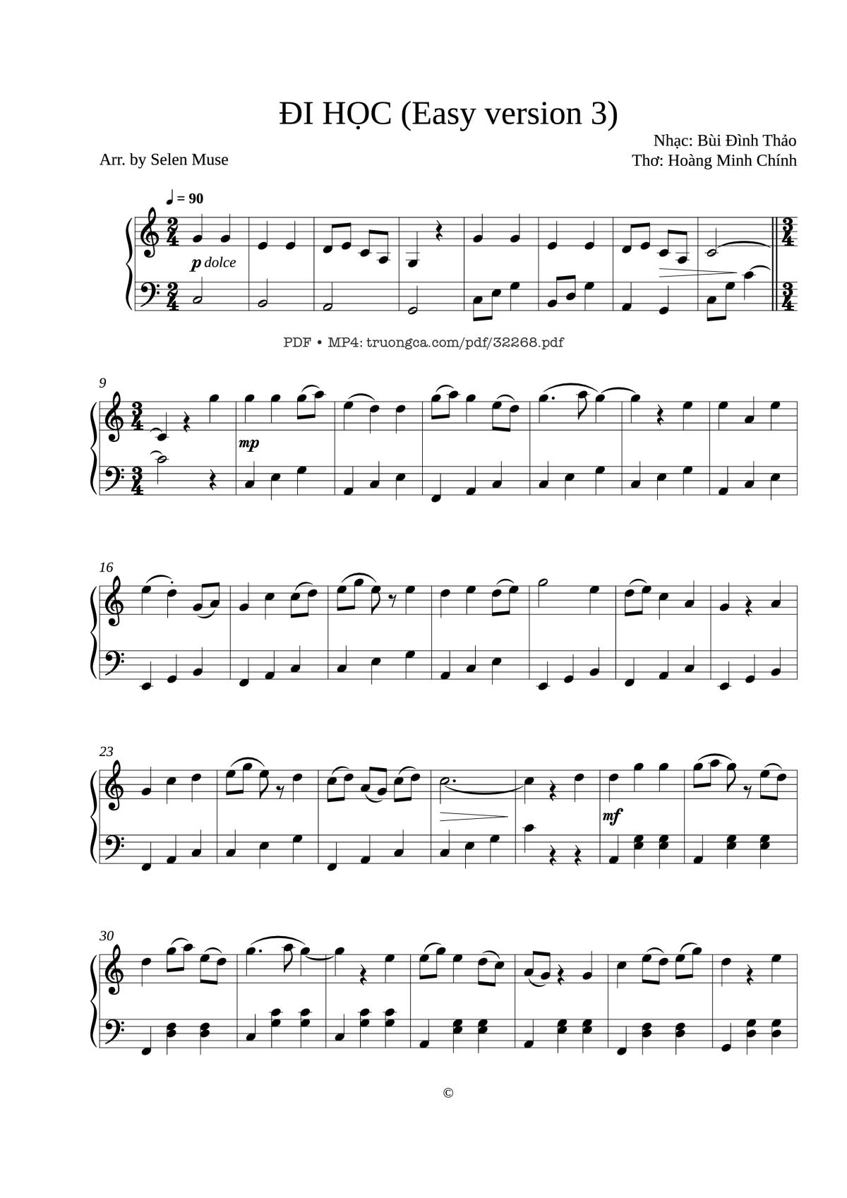 Download and print in PDF or MIDI free sheet music of DI HOC (Easy version 3) – Selen Muse - selenaentoffi for DI HOC (Easy version 3) – Selen Muse arranged by selenaentoffi for Piano (Solo)