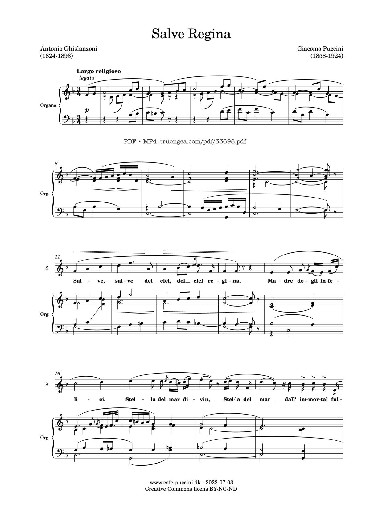 Download and print in PDF or MIDI free sheet music of Salve Regina - Giacomo Puccini for Salve Regina by Giacomo Puccini arranged by Jwagner for Soprano, Organ