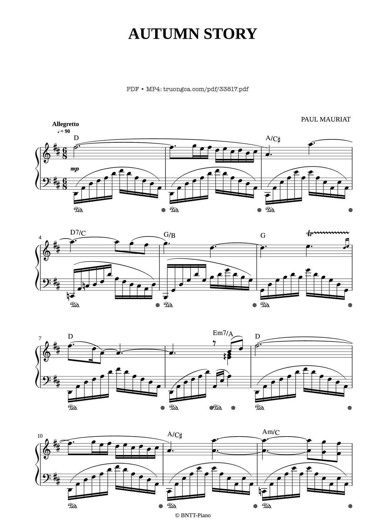 Download and print in PDF or MIDI free sheet music of AUTUMN STORY - Le Piano sur la Vague - Paul Mauriat for Autumn Story - Le Piano Sur La Vague by Paul Mauriat arranged by BNTT-Piano for Piano (Solo)