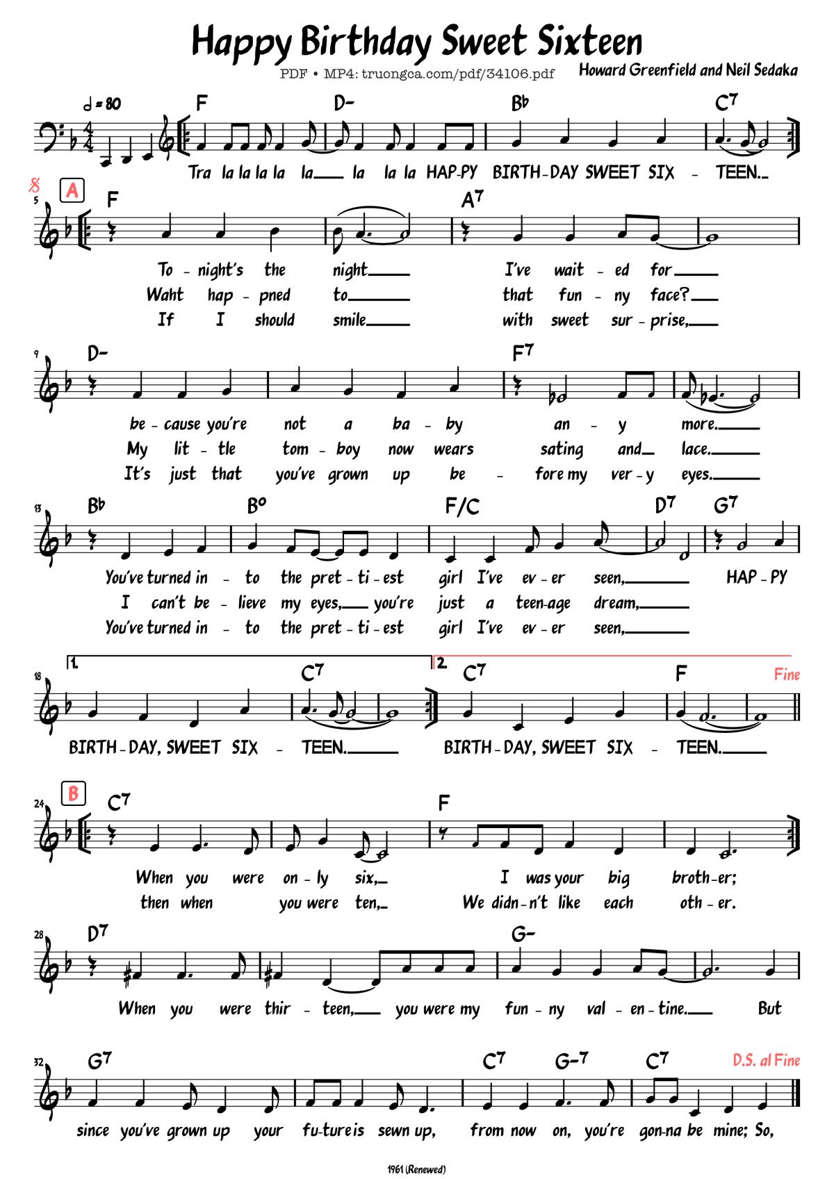 The videos/audio files Happy Birthday Sweet Sixteen by Howard Greenfield are embedded from YouTube, MuseScore, or other third-party sources. These videos are subject to third-party copyright control and may be removed in accordance with YouTube’s copyright rules or the policies of the respective platforms, and may include advertisements. If you are unable to access these songs, it means they may have been removed by the original source.