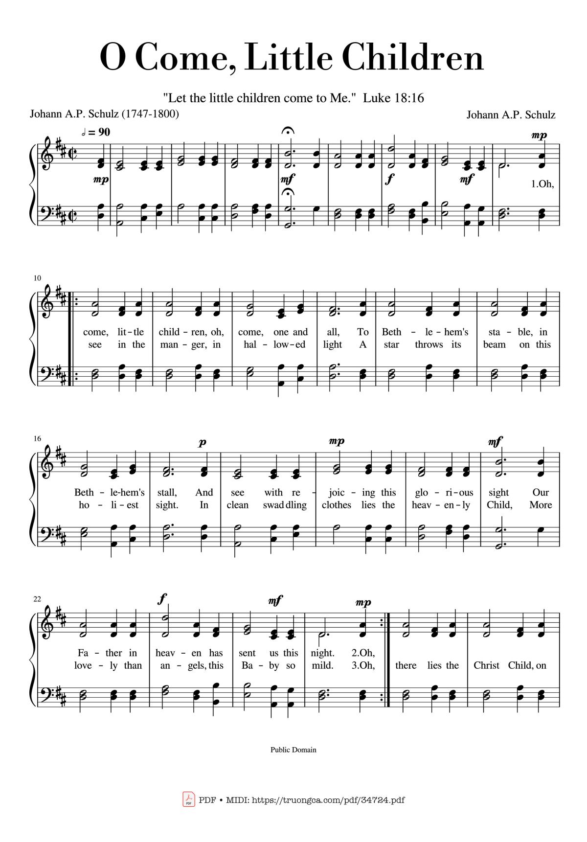 🎹 Johann A.P. Schulz O come, little children, O come, one and all, O come to the manger in Bethlehem's stall [PDF] [Sheet] [Lyrics] [Mp4/Midi]