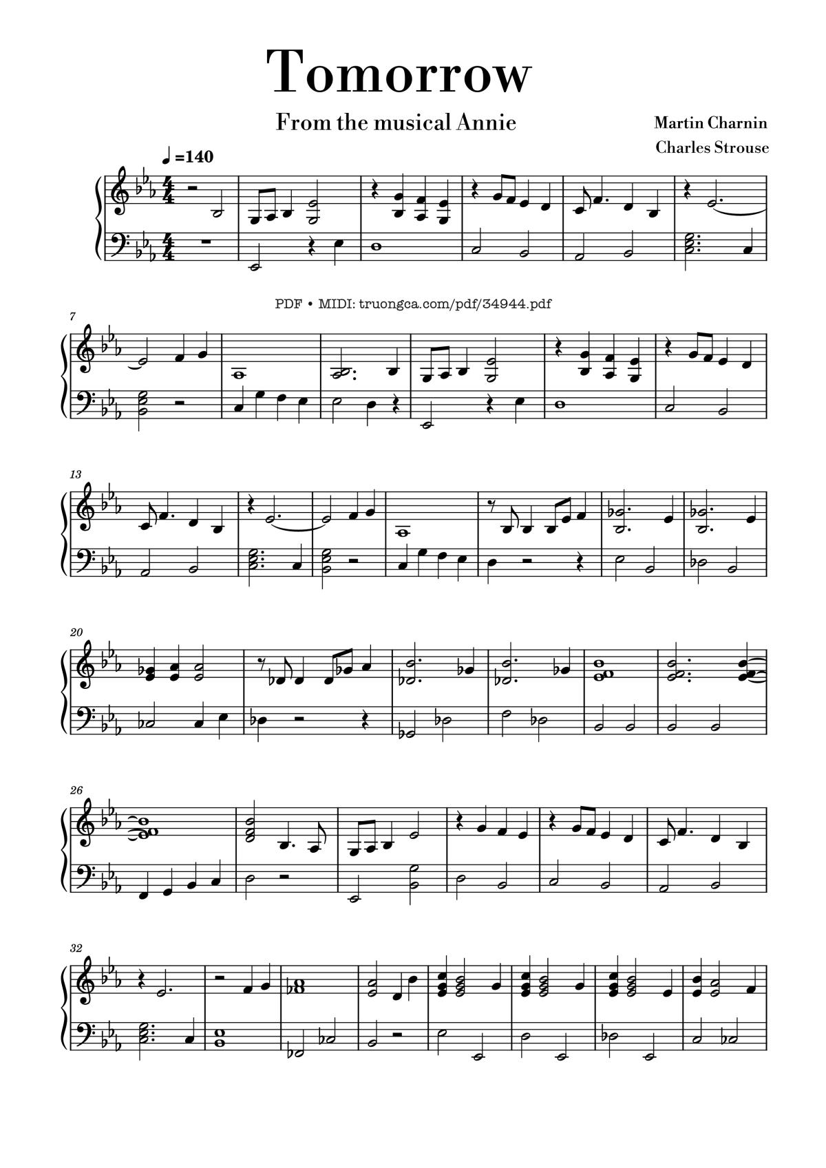 The videos/audio files Tomorrow Piano EASY by Annie are embedded from YouTube, MuseScore, or other third-party sources. Availability depends on the original platforms and may change due to copyright rules, policies, or advertisements. If a video or audio file cannot be played, it may have been removed by the source.