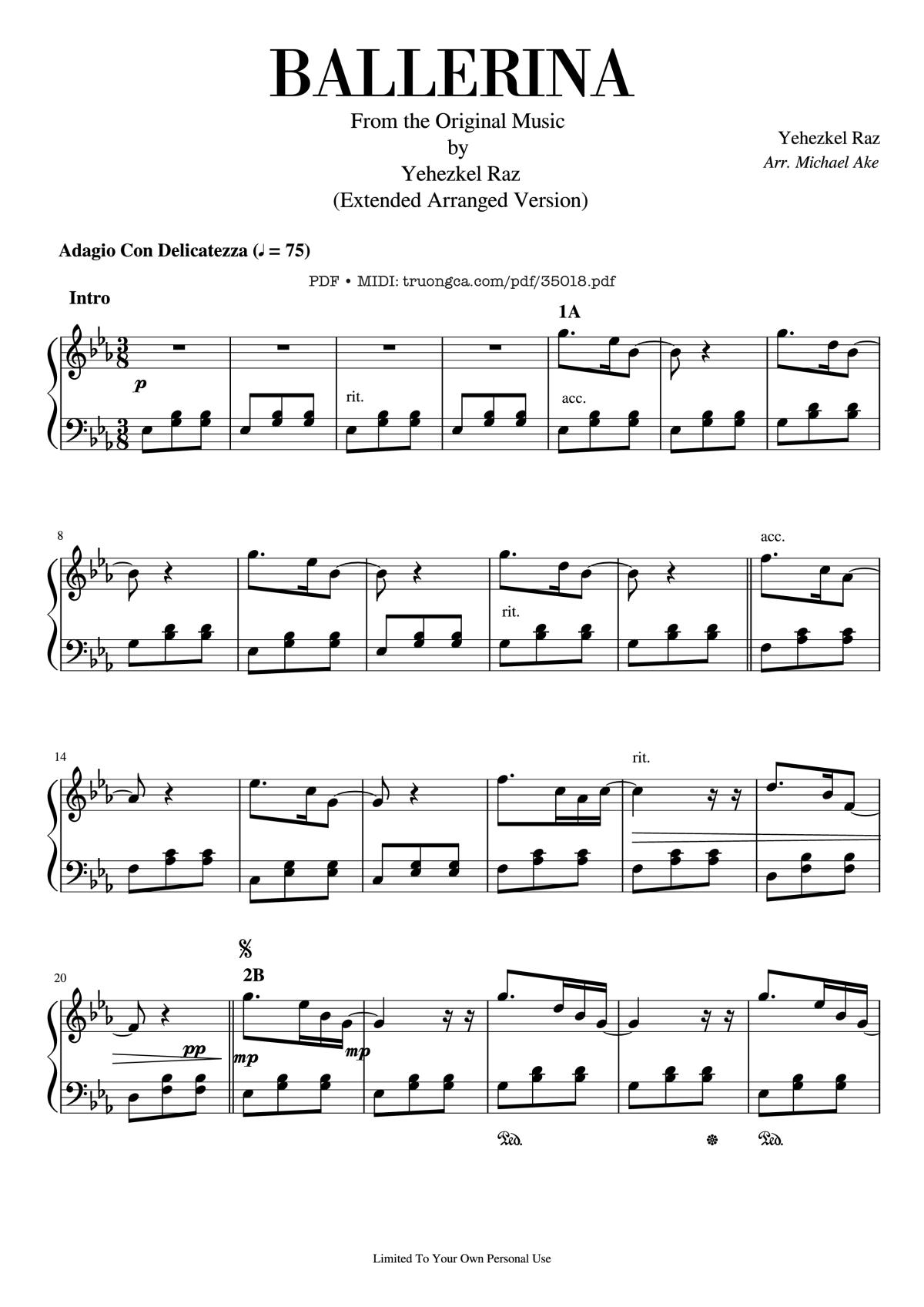 The videos/audio files Ballerina Piano by Yehezkel Raz are embedded from YouTube, MuseScore, or other third-party sources. Availability depends on the original platforms and may change due to copyright rules, policies, or advertisements. If a video or audio file cannot be played, it may have been removed by the source.