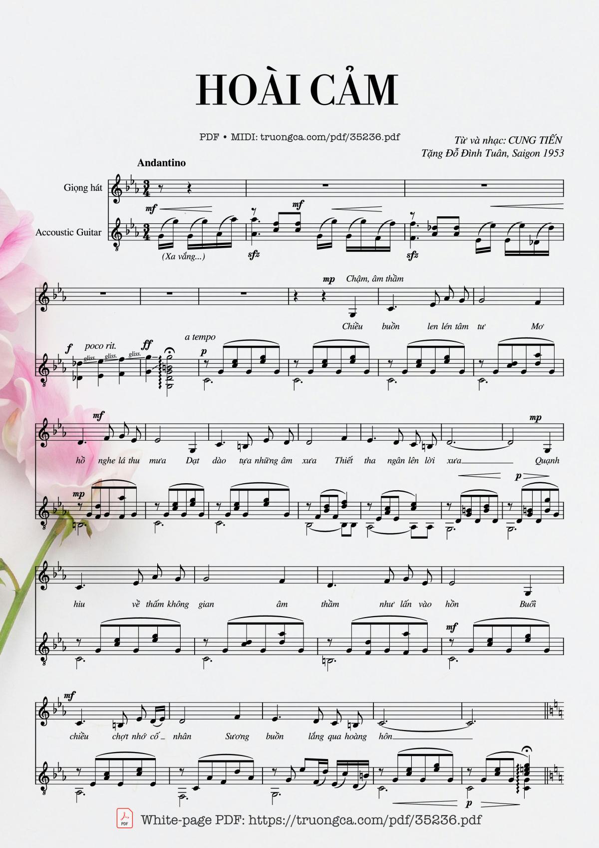 Download and print in PDF or MIDI free sheet music of Hoài Cảm - Cung Tiến for Hoài Cảm by Cung Tiến arranged by letien50 for Guitar (Mixed Duet)