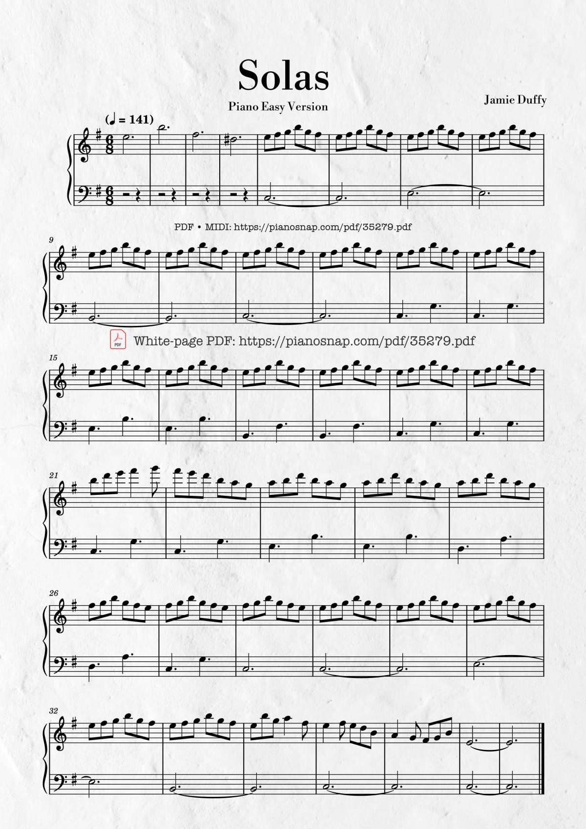 Sheet PDFs titled Solas - Jamie Duffy Piano EASY: