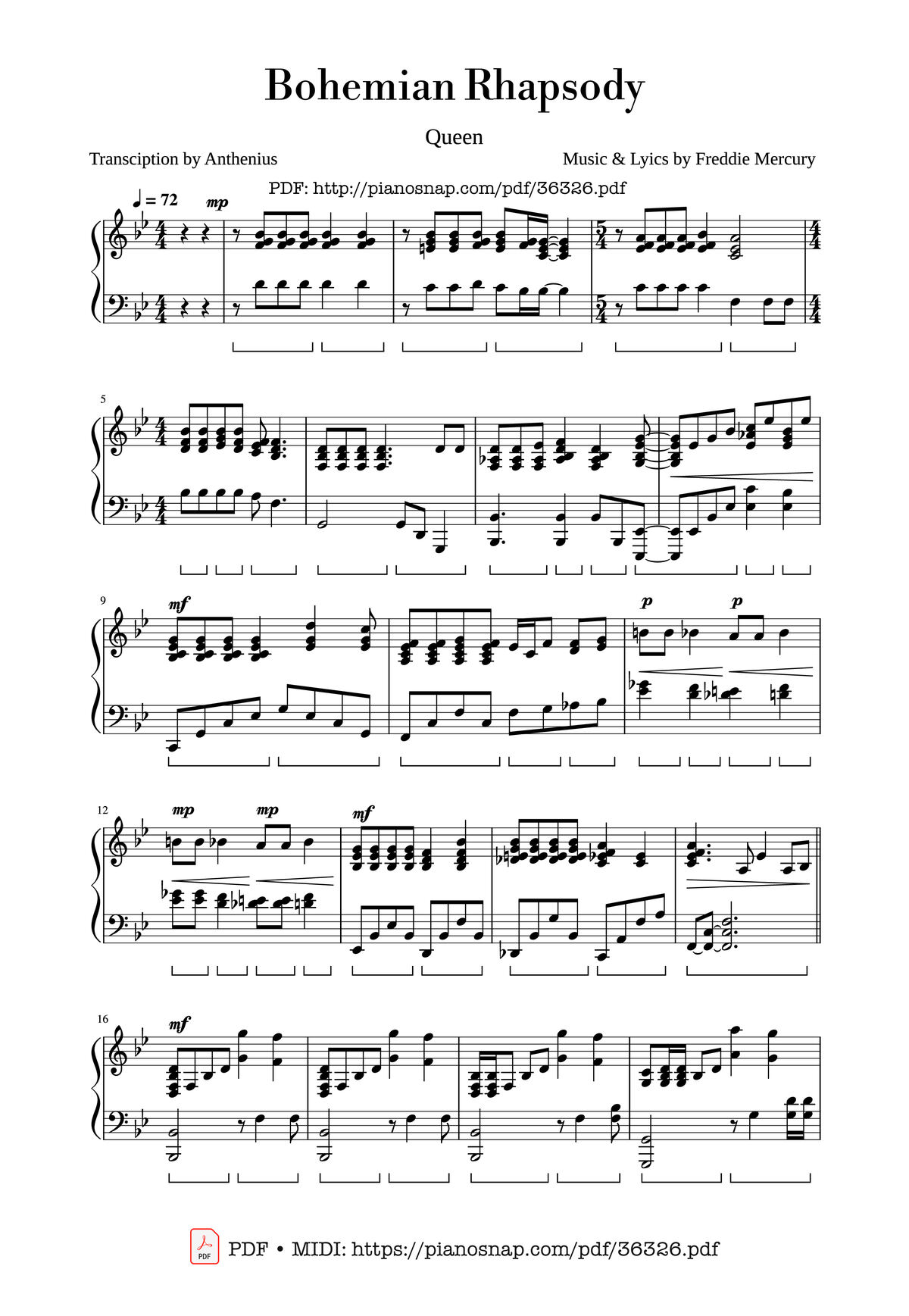Transciption by Anthenius Music & Lyics by Freddie Mercury